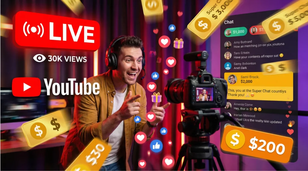 O grande diferencial das livestreams é a capacidade de monetizar o engajamento instantaneamente. O YouTube oferece um arsenal de ferramentas para isso: