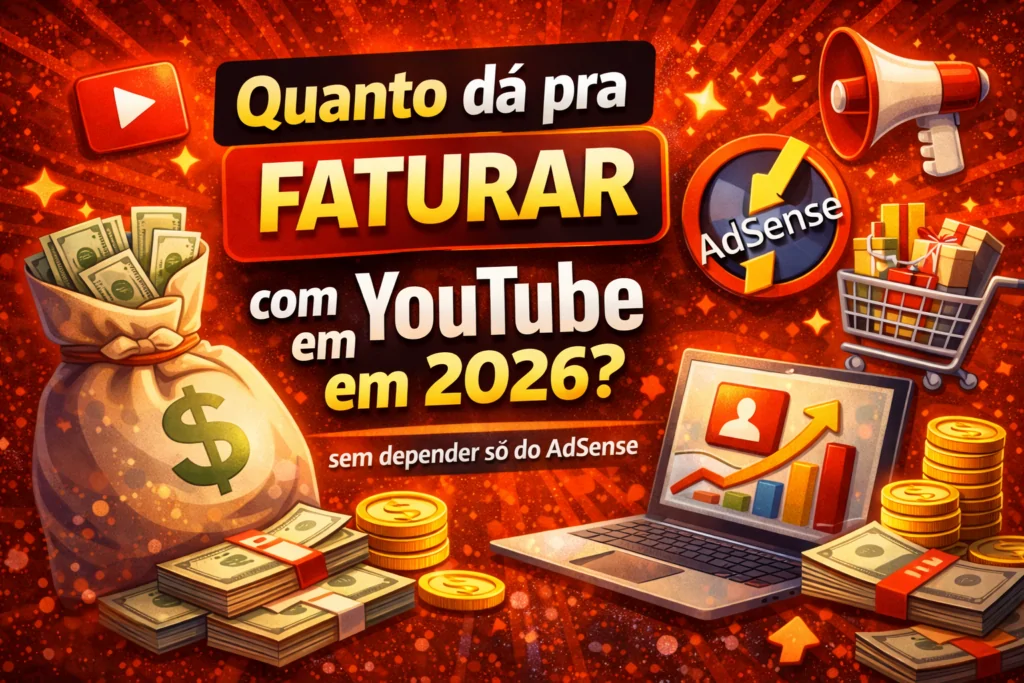 Neste texto, você vai entender quanto dá para faturar com YouTube em 2026, por que o AdSense não é o principal caminho e quais são as formas mais lucrativas de monetização.